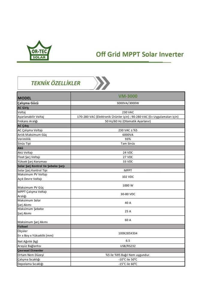 ORTEC SOLAR 24V 3KW MPPT AKILLI İNVERTER